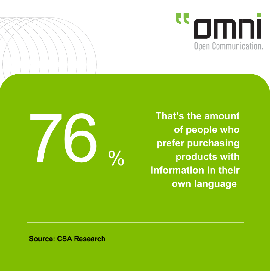 Research shows that 76% of people prefer purchasing products with information in their native language. Additionally, 40% will never buy from websites in other languages (CSA Research, 2020).